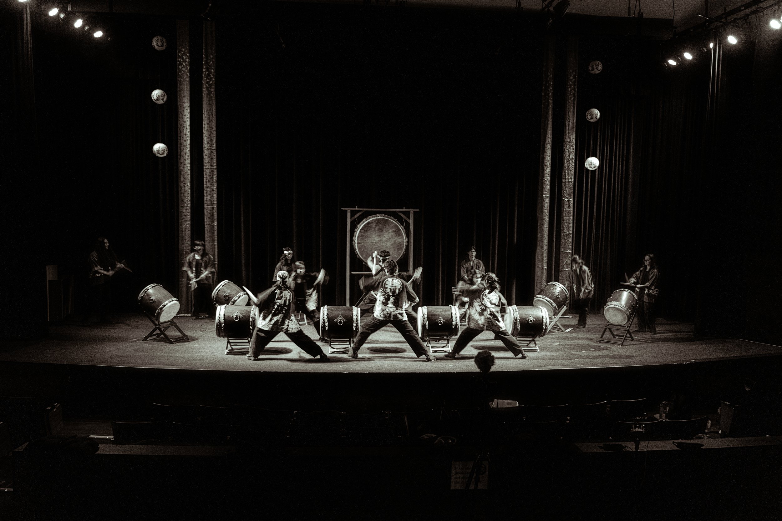 Taiko (太鼓) is the Japanese word for drums. Taiko in Japan can be traced back as early as the 6th century CE and can be linked to influences of Korean and Chinese drumming. In its earliest forms, Taiko in Japan could be found serving religious, festival, and theatrical purposes. In its evolution into Kumi-Daiko (組太鼓), ensemble Taiko drumming, Daihachi Oguchi, a jazz drummer, combined individual drums together and founded Osuwa Daiko in 1951, placing Taiko drums onto the performance stage for the first time. This radical redefinition of Taiko sparked the creation of Kumi-Daiko groups in Japan and across the Japanese diaspora in North and South America. As a performance art form that has developed alongside contemporary music and culture, Taiko has adopted a diverse range of expression and continues to evolve as more players and groups join the Taiko community.